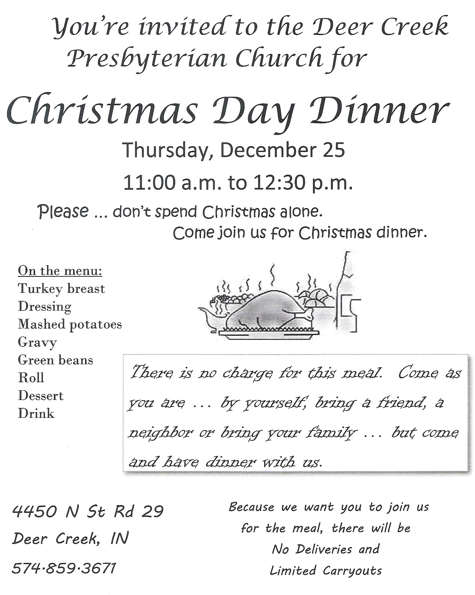 Christmas Day Dinner, December 25, 2025, 11:00 AM - 12:30 PM