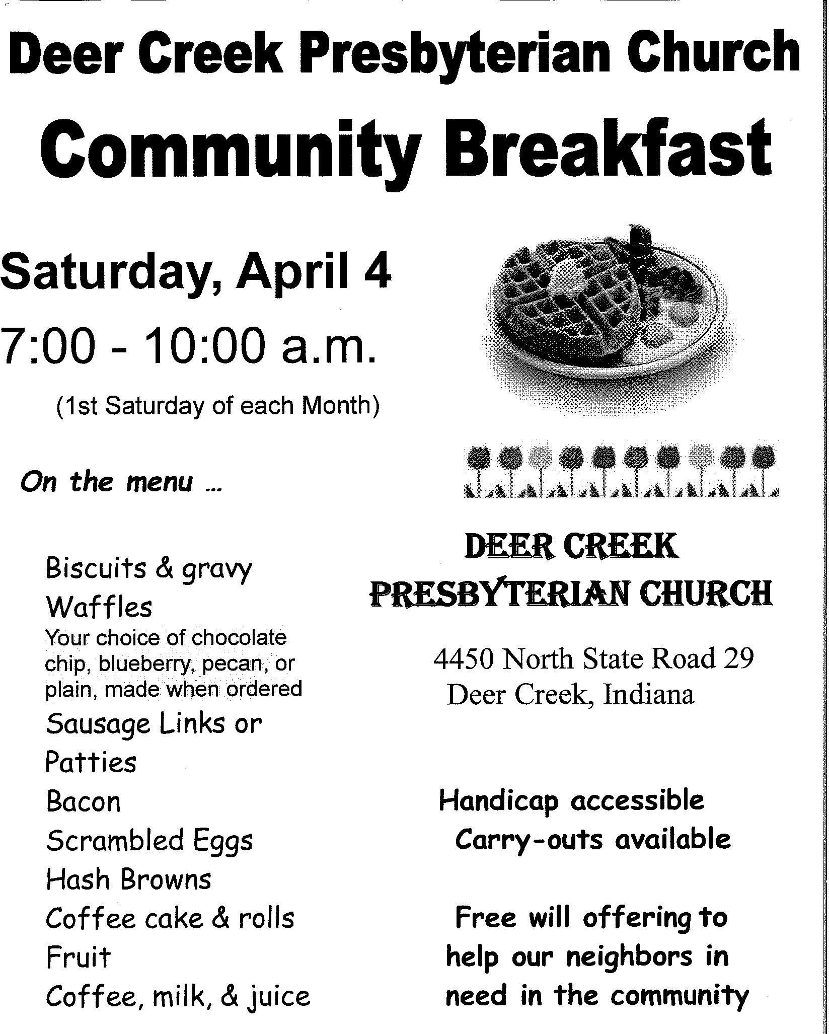 First Saturday Community Breakfast, April 4, 2026, 7:00-10:00 A
