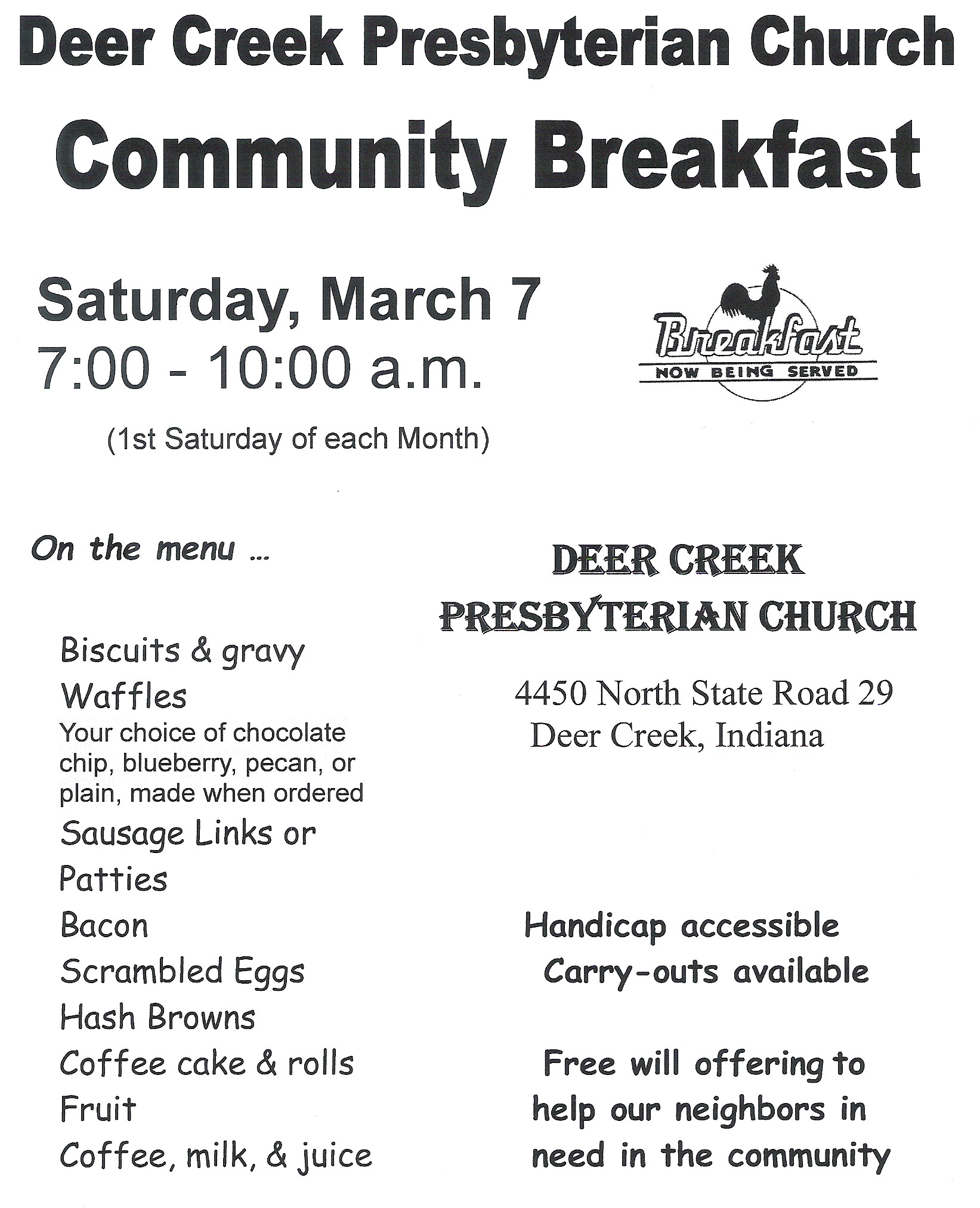 First Saturday Community Breakfast, March 7, 2026, 7:00-10:00 AM